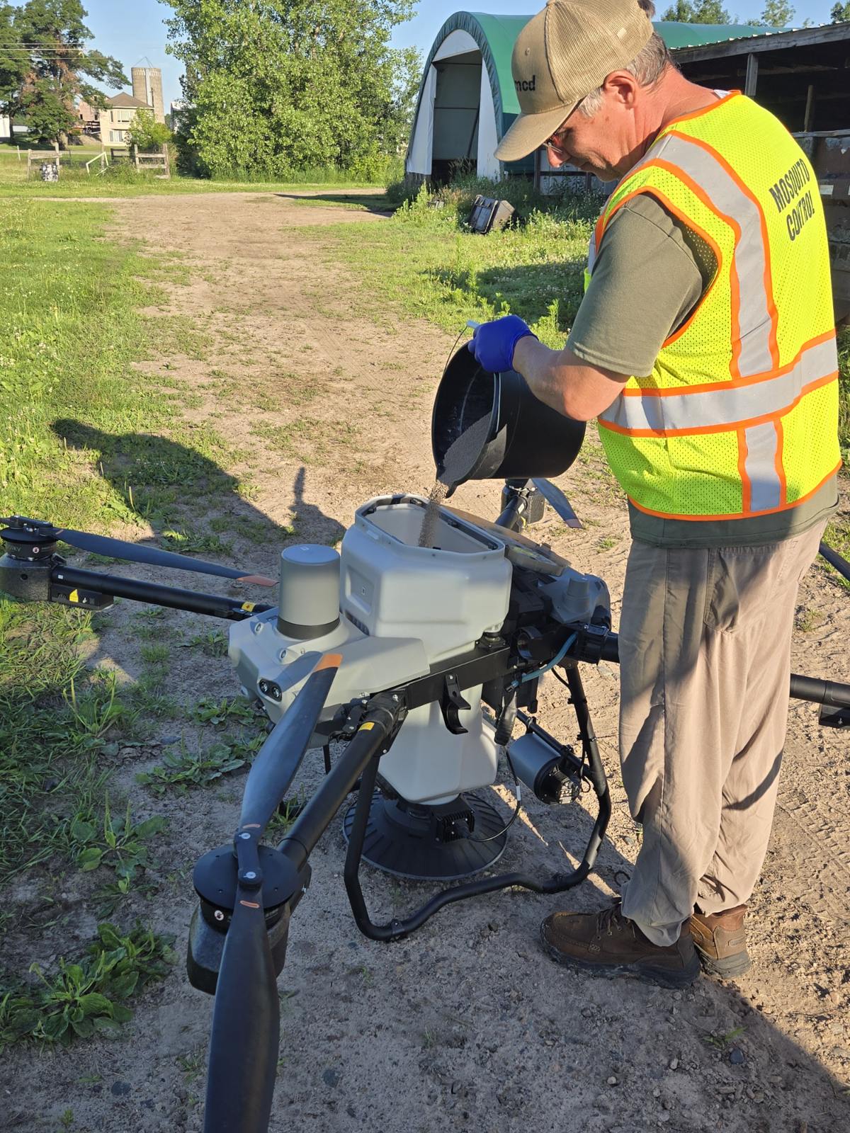 Welcome to the Andover (aka ‘North’) facility page! Our facility has a full-time staff consisting of 6 Field Operations Supervisors and 1 Regional Operations Manager. We hire around 44 seasonal Field Mosquito Technicians and 4 Drone Technicians for the summer mosquito season (April-October.) We are excited to have two drones at our facility that help us treat larval mosquitoes in those hard-to-reach wetlands! Our facility has some of the most diverse landscapes in the district including wetlands, forests, prairies, oak savannah, and tamarack bogs. Our facility has over 16,000 documented wetland mosquito breeding sites, totaling around 66,000 acres! Many of these acres are treated by our helicopter, that you have probably seen flying around.
