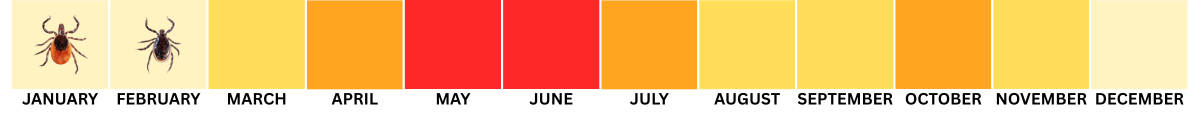 Not all species of ticks follow the exact same patterns, but here is a helpful guide to when you need to be the most cautious about ticks: